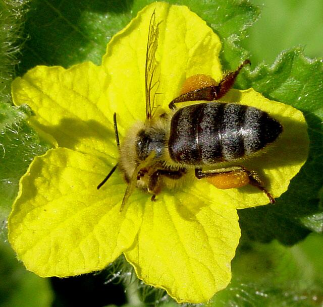 Honey bee in a cucumber flower